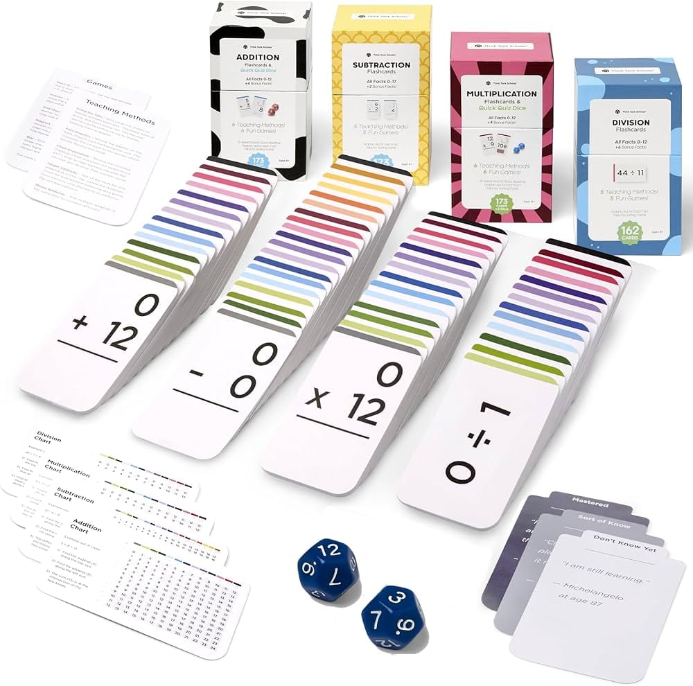 We're flash card people and we like the quality and design of Think Tank Scholar Flashcards. We mostly use their math cards, but they have language options, too.