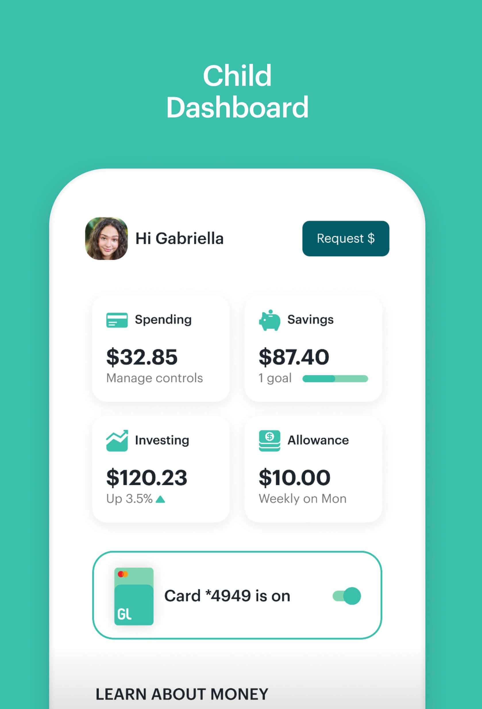 We use Greenlight to manage allowance. Our kids can use the app on their iPads to divide their weekly deposit between their savings and spending accounts, or pledge an amount towards a big goal. Parents can also set an interest rate to encourage saving. Premium features allow kids to invest in securities as well as donate to charities. Accounts come with a debit card with fine-tuned spending controls. The card itself also has the kid's portrait printed on it for security. Our kids are too young to use the cards – most stores won't even let them pay without a parent around – but they'll come in handy when they're teens.