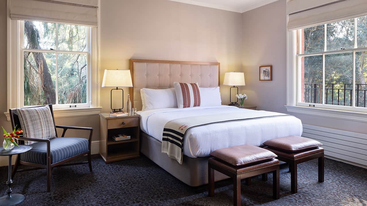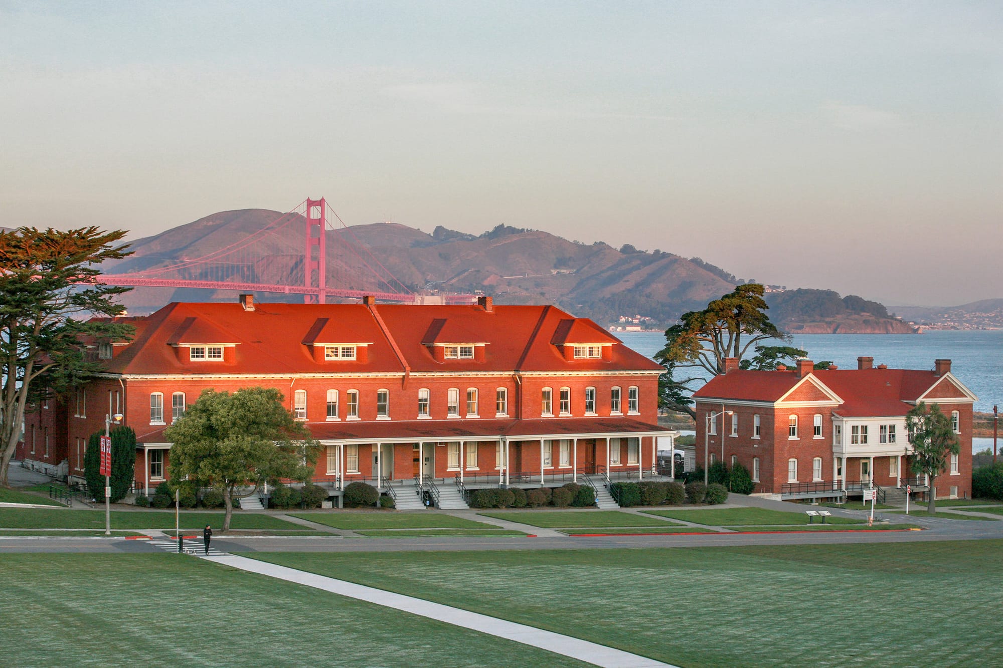 A serene retreat within the Presidio, an 18th-century military post turned into a forested park with trails and excellent views of the bay. The building is a Georgian Revival typical of officer housing on the former base; you'll find rocking chairs on porches and gas fireplaces in many of the rooms.