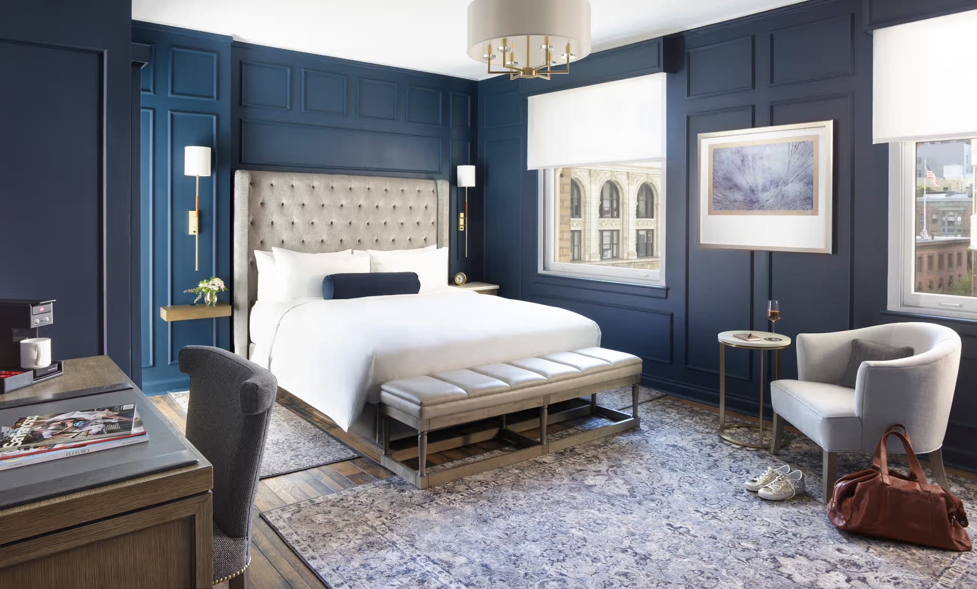 The Battery is an exclusive private club that offers 14 rooms to non-members, granting them temporary access to the club’s amenities. The common areas are richly designed, but the rooms seem more like an afterthought.